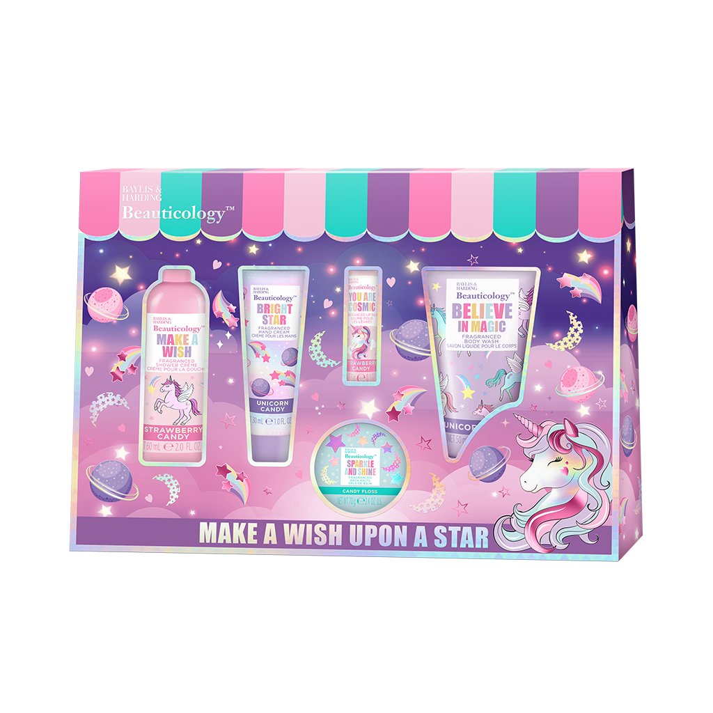 Colecția Beauticology este jucăușă, distractivă, magică și colorată. Designul cu detalii holografice, culori vesele și motive galactice formează împreună cu aromele variate de dulciuri o colecție perfectă pentru micii sau marii iubitori de unicorni!