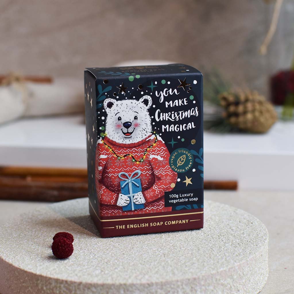 Săpunul solid natural creează o spumă bogată, îndepărtează impuritățile și este blând cu pielea. Cadoul ideal de Crăciun.