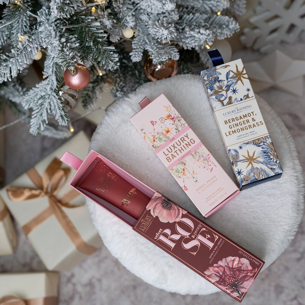 Colecția sofisticată și elegantă Velvet Rose & Peony inspirată de trandafiri și bujori într-o serie de nuanțe bogate de roz creează împreună cu imprimeul floral distinct și tipografia aurie o serie romantică, atemporală de produse de îngrijire a corpului, potrivită pentru femeile cu vârsta de peste 40 de ani. Întreaga colecție este însoțită de un parfum feminin, fructat de portocale și zmeură, cu note florale pronunțate de trandafir și ylang ylang, finisat cu o bază caldă de piersică și lemn de santal.
