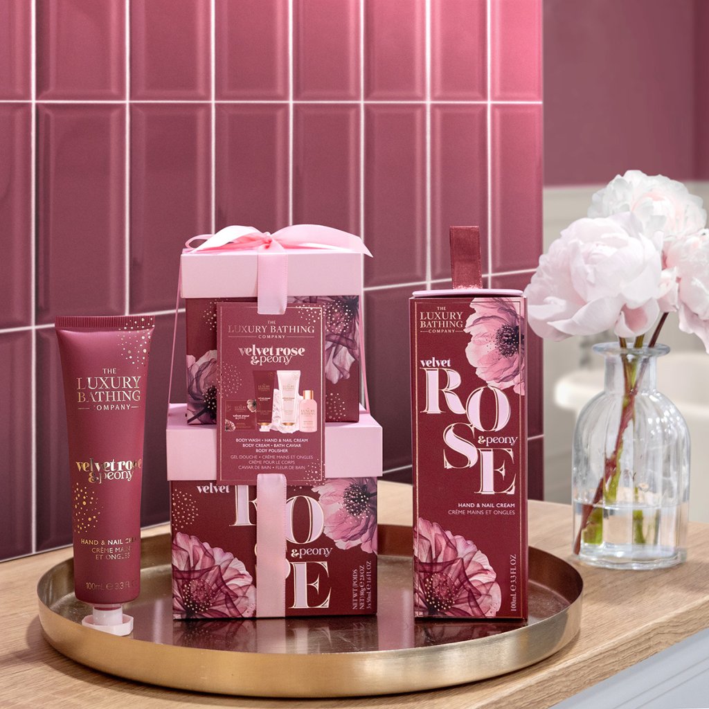 Colecția sofisticată și elegantă Velvet Rose & Peony inspirată de trandafir și bujori într-o serie de nuanțe bogate de roz creează, împreună cu imprimeul floral distinctiv și tipografia aurie, o serie romantică, atemporală de produse de îngrijire a corpului, potrivită pentru femeile cu vârsta peste 40 de ani. Întreaga colecție este însoțită de un parfum feminin, fructat, de portocale și zmeură, cu note florale distincte și ylang ylang, finisat cu o bază caldă de piersici și lemn de santal.