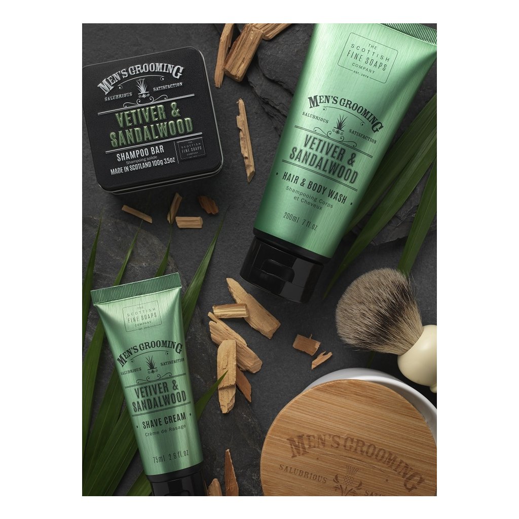 Balsam calmant și hidratant după ras pentru bărbați, cu unt de cacao, ulei de cânepă, cristale de mentol și un parfum plăcut de vetiver și lemn de santal.