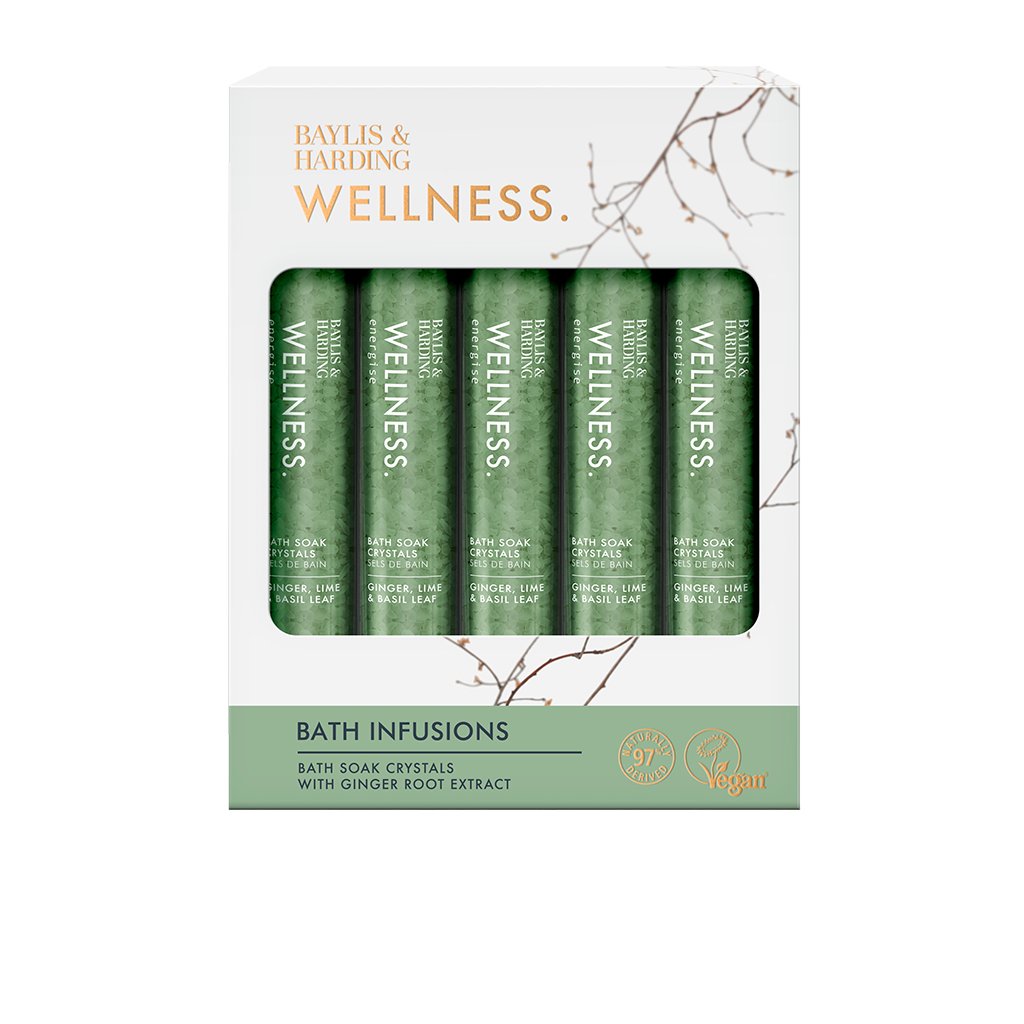 Setul cadou de săruri de baie Baylis & Harding este un tratament Wellness conceput special pentru femeile care doresc să se bucure de momente de liniște și regenerare. Conține cinci eprubete cu cristale de baie cu extract de rădăcină de ghimbir și parfum revigorant de lime și busuioc, care stimulează simțurile și, în același timp, relaxează corpul și mintea. Cristalele se dizolvă ușor în timpul băii și ajută la ameliorarea stresului și a tensiunii. Ambalajul elegant, cu design natural, îl face un cadou minunat pentru orice femeie care tânjește după odihnă și armonie interioară.