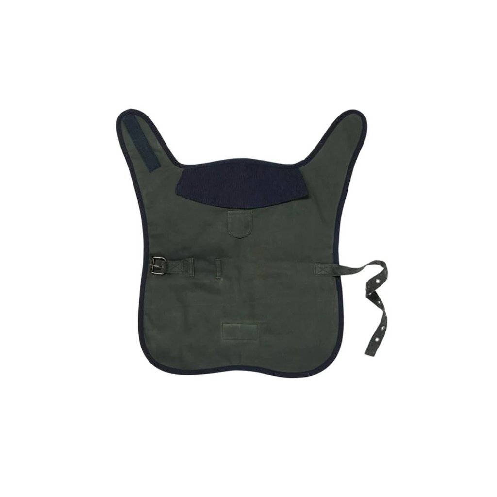 Fabricată din bumbac cerat durabil, rezistent la apă, care protejează împotriva ploii. Cu velcro reglabil la gât și curea în partea inferioară a corpului.