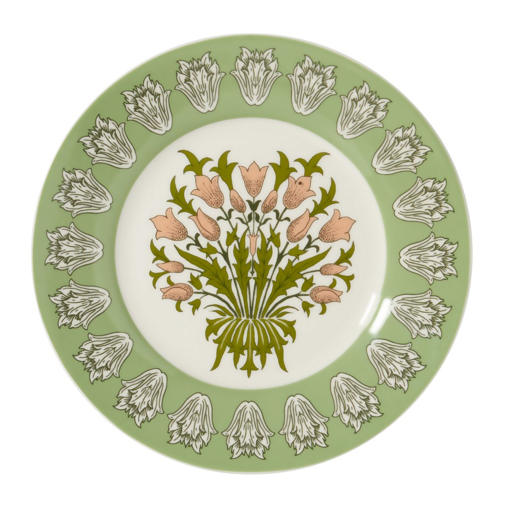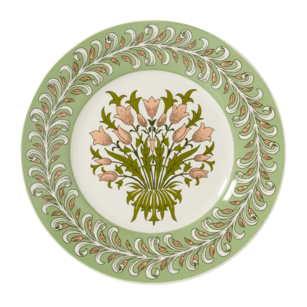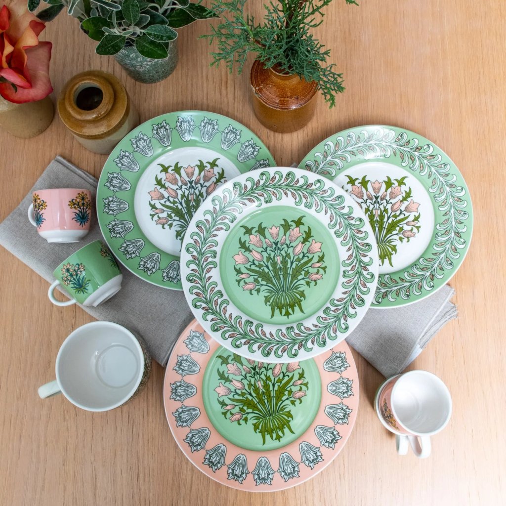 Farfuriile de desert minunate cu imprimeu Garden în verde și roz antic vor arăta grozav în fiecare casă.