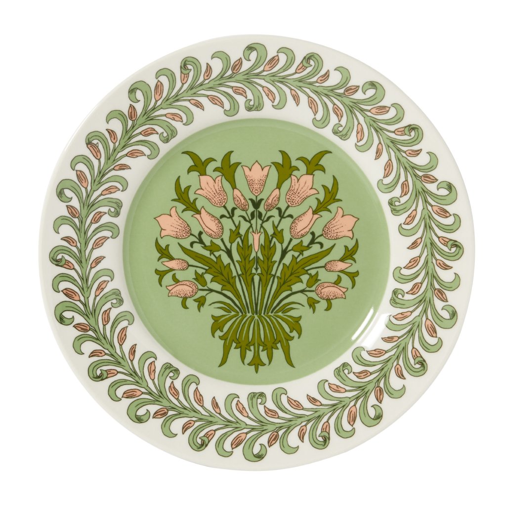 Farfurii de desert din porțelan cu design, cu model de la artistul William Morris.