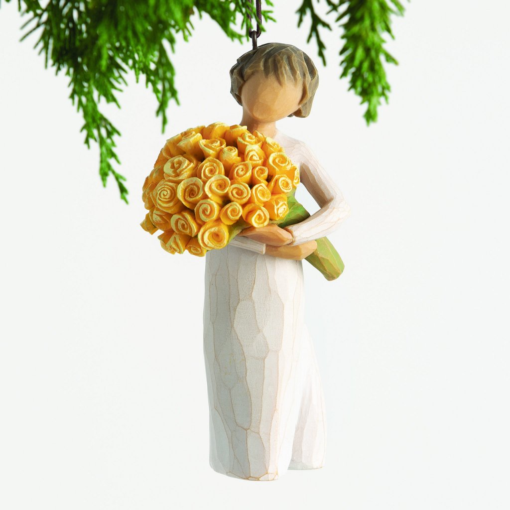De multe ori le dorim mult noroc celor pe care îi iubim și îi respectăm cu mare bucurie. Dorința este din inimă, din prietenie și cu speranța că dorința noastră va fi îndeplinită pozitiv. Figurina care tine in brate un buchet mare de trandafiri galbeni simbolizeaza prietenia, optimismul si bunastarea. Soarele florilor galbene vă va însufleți fiecare zi.