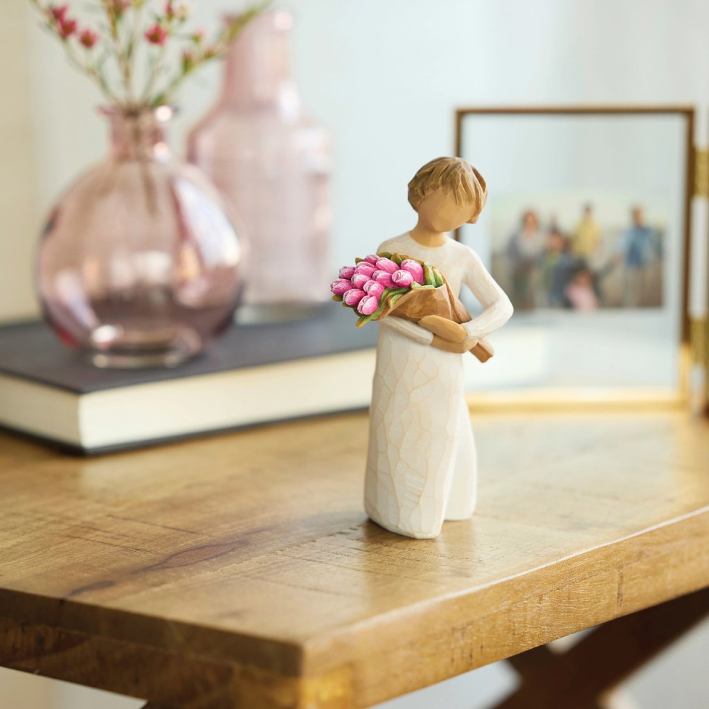„Willow Tree este un O linie intimă și personală de figurine sculptate manual. Fiecare reprezintă o calitate sau un sentiment care ne ajută să-i apreciem pe cei din jurul nostru, să-i vindecăm pe cei răniți sau să descoperim frumusețea lumii din jurul nostru. Am folosit doar gesturi pentru a exprima emoții... înclinări ale capului, plasarea mâinilor sau întoarceri ale corpului. Fiecare figurină este realizată după xilogravura mea originală. Sper că simplitatea acestor figurine transmite pace și liniște nu numai pentru tine, ci și pentru cei pe care îi iubești."