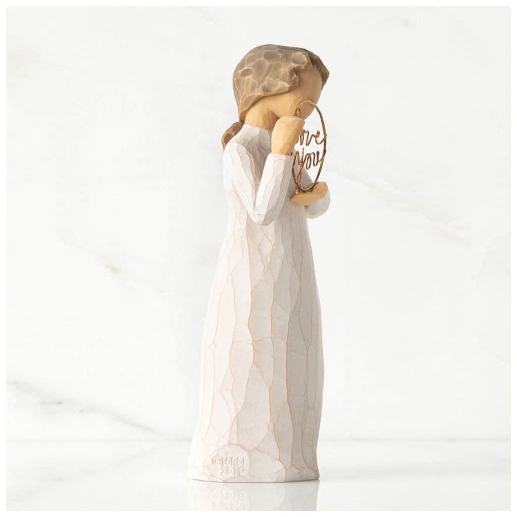 „Două cuvinte scurte care înseamnă atât de mult! Figura îți exprimă sentimentele atunci când cuvintele sunt inutile. Oferă un memento iubitor copiilor, soțului tău, celor dragi de Ziua Îndrăgostiților sau prietenilor.”