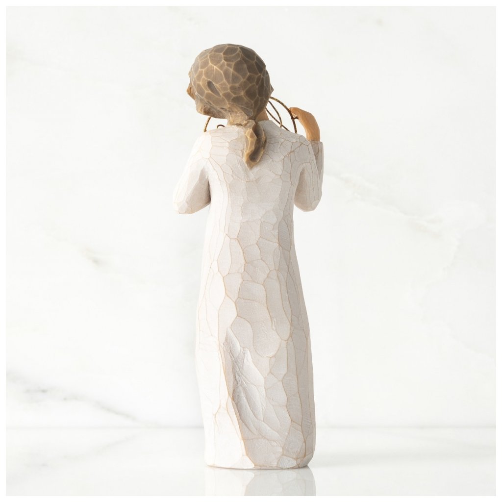 Produsele Willow Tree sunt fabricate dintr-o rășină sintetică care imită aspectul lemnului sculptat.