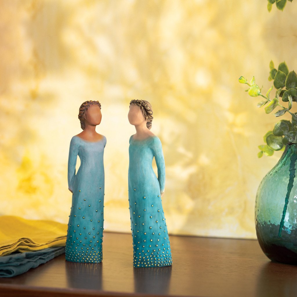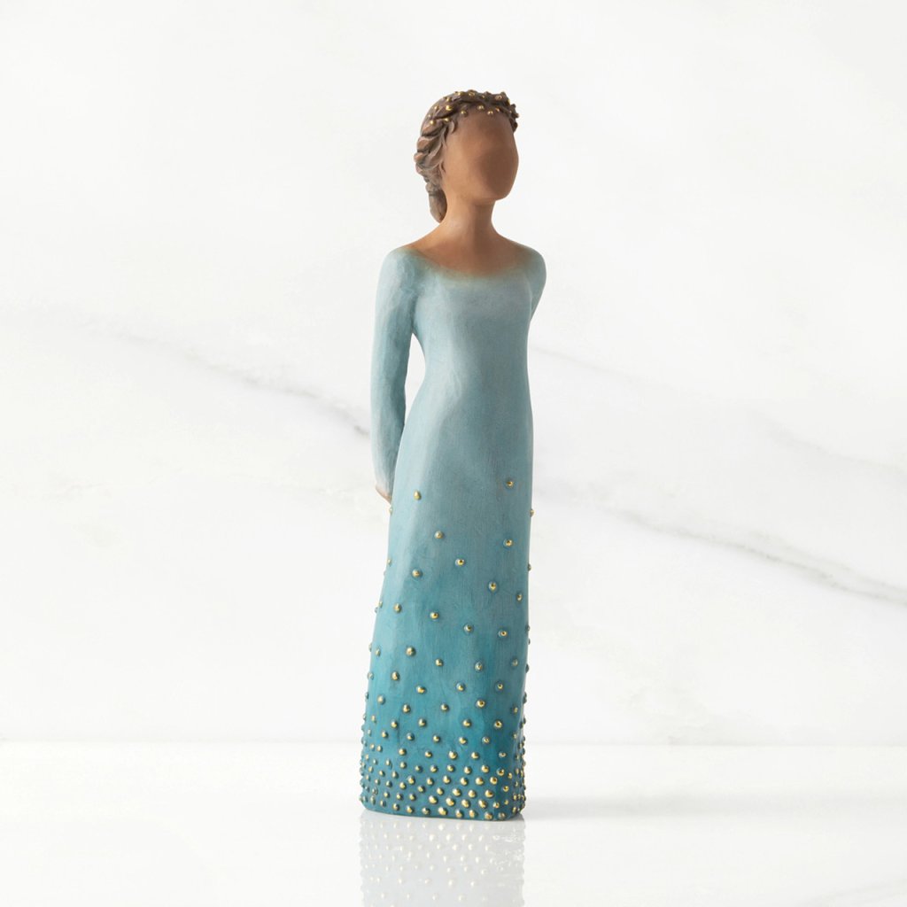 Această lucrare este inspirată de femeile a căror frumusețe înnăscută, bunătate și generozitate radiază din interior și care împărtășesc de bunăvoie aceste daruri cu ceilalți. Produsele Willow Tree sunt fabricate dintr-o rășină sintetică care imită aspectul lemnului sculptat.