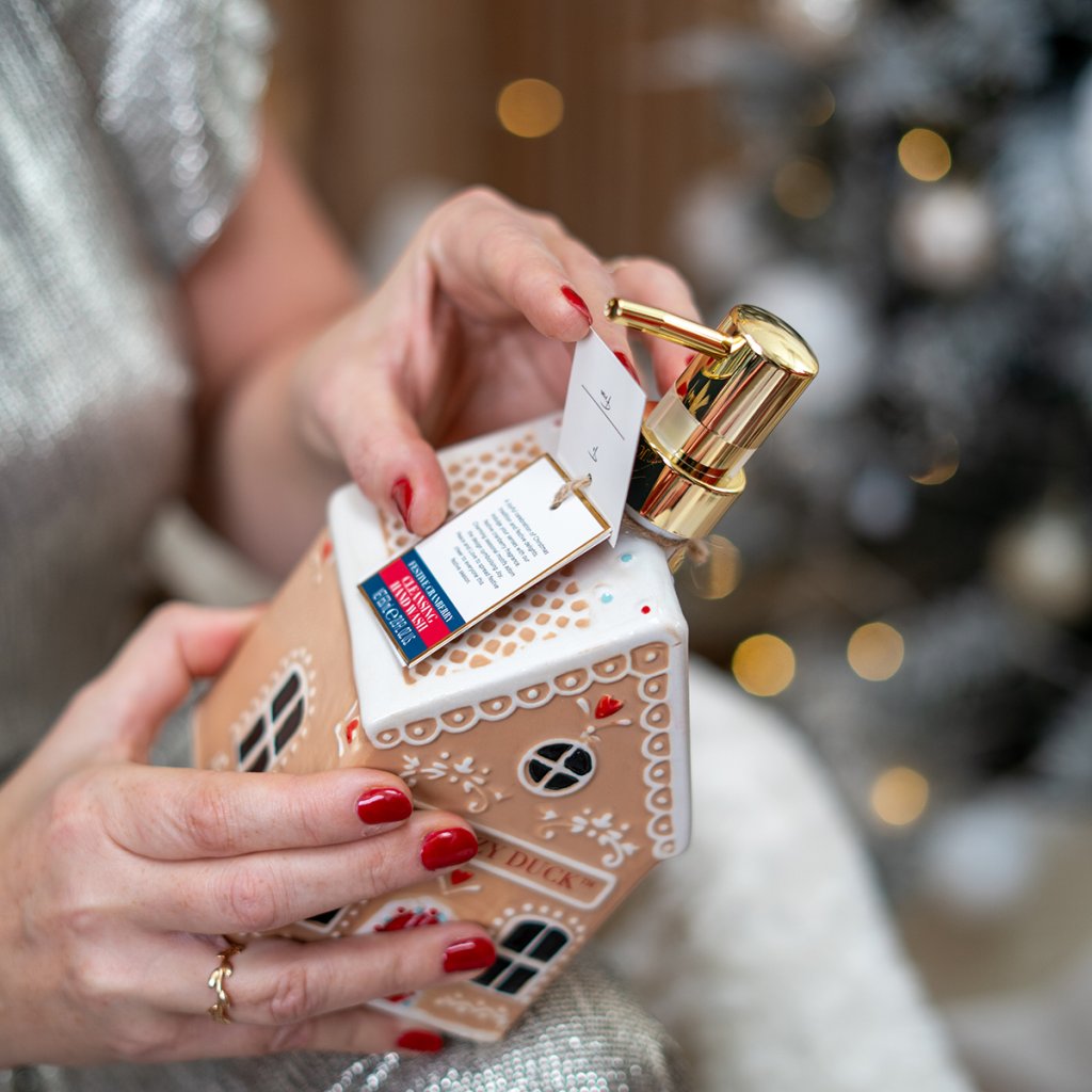 Vin fiert într-o cană, luminițe de Crăciun sclipitoare și aroma dulce a turtă dulce... Bucurați-vă de atmosfera de Crăciun cu acest săpun minunat într-o căsuță ceramică de turtă dulce! Răsfățați pielea mâinilor cu parfumul de merișoare suculente și treziți magia Crăciunului chiar și în baia dumneavoastră. Săpunul curăță delicat pielea mâinilor și o lasă moale, fină și plăcut parfumată.