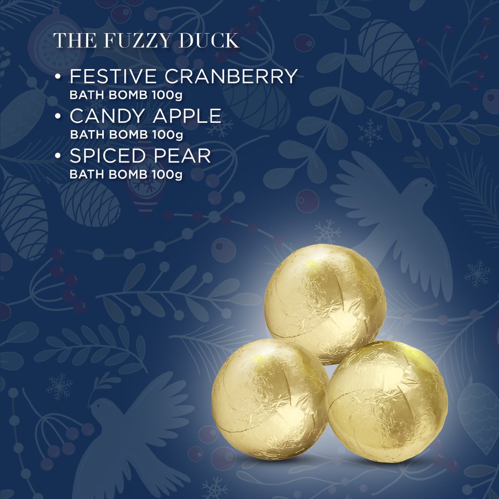 Transformă o baie obișnuită într-un ritual festiv plin de răsfăț! Acest set elegant de trei bombe de baie efervescente este ascuns într-un ambalaj cadou cu motive de Crăciun. Fiecare bombă eliberează un parfum delicat și creează o atmosferă caldă plină de confort – ideală pentru serile de iarnă. Va încânta ca un cadou sau ca o recompensă parfumată pentru tine.