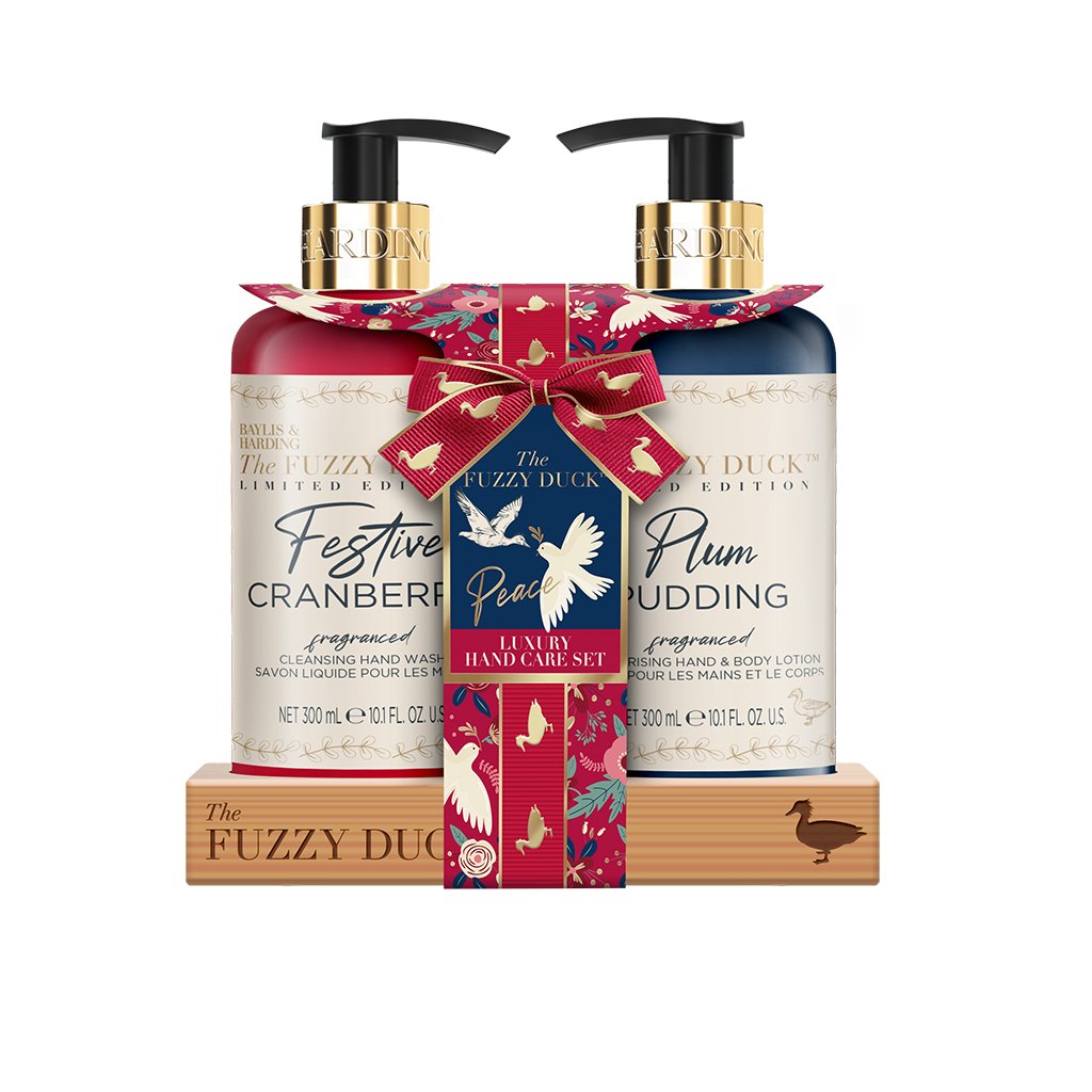 Acest set elegant de îngrijire a mâinilor este pur și simplu regina oricărei băi. Cu pompele practice, este perfect pentru chiuvetă, cadă sau cabină de duș. Săpunul lichid curăță delicat pielea mâinilor, lăsând-o moale și frumos parfumată cu note de merișoare suculente. Loțiunea de corp hrănitoare oferă pielii hidratarea necesară și ameliorează senzația de uscăciune. O va lăsa moale, suplă și plăcut parfumată cu note de budincă de prune. Răsfățați-vă cu un ritual senzual de îngrijire cu Baylis & Harding!