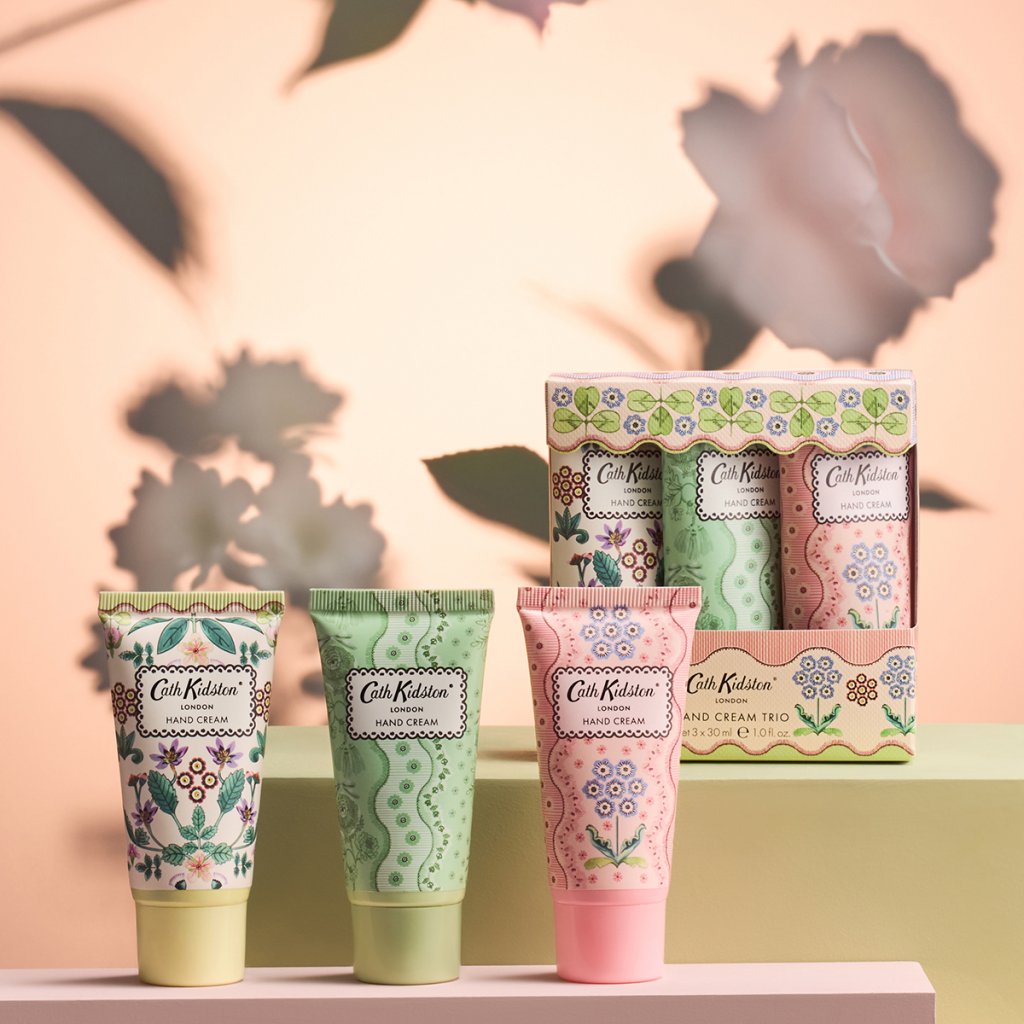 Setul de trei creme de mâini Cath Kidston combină un parfum proaspăt, îngrijire eficientă și un design floral iconic. Datorită dimensiunii practice, cremele sunt perfecte pentru acasă, la serviciu sau în călătorii.
